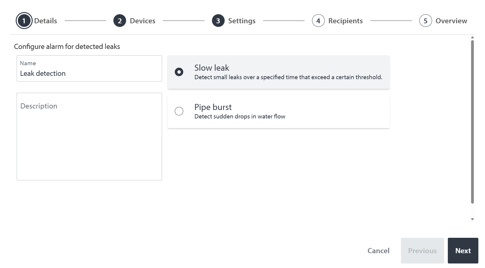 Added leak detection alarm