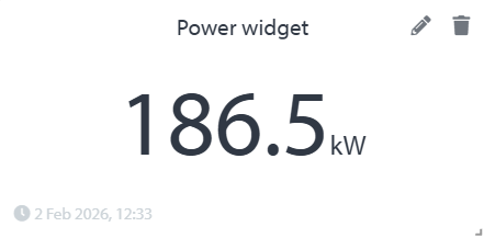 The power widget displays the energy consumed in a selected time period.